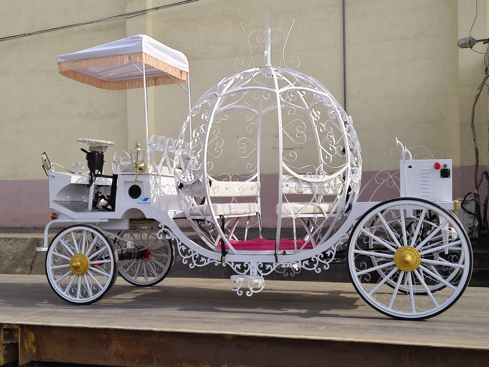 Nouvelle calèche électrique de style européen, calèche à cheval électrique de type citrouille pour les visites touristiques, hôtel, en vente