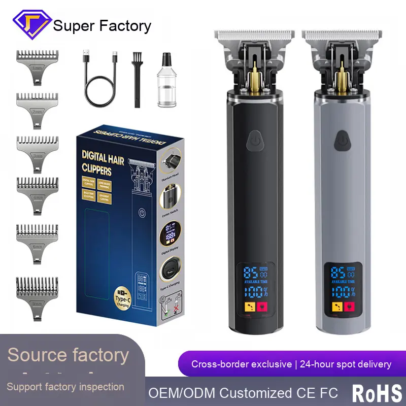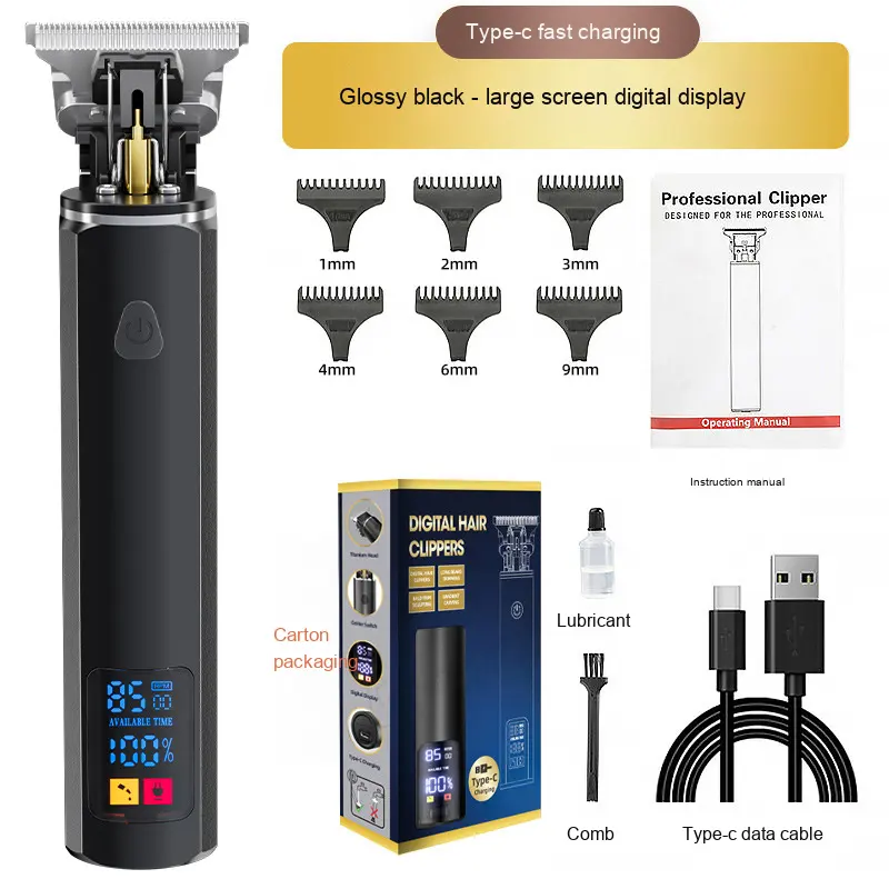 Nouveau électrique pour tondeuse affichage numérique alliage huile tête tondeuse pour tête chauve gravure acier inoxydable pour coupe de cheveux à la maison