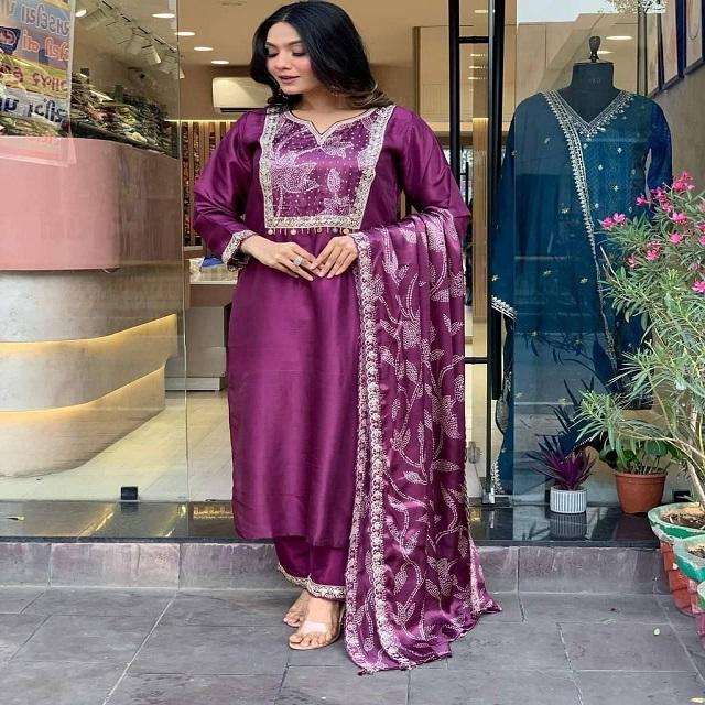 Product Name:Most Trending Beautiful Roman Silk kurti Pant & Dupatta