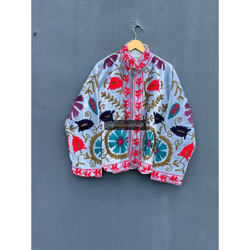 Nouvelle veste courte en velours avec broderie Suzani, vêtement de fête pour femmes, doublure en coton à l'intérieur, pardessus
