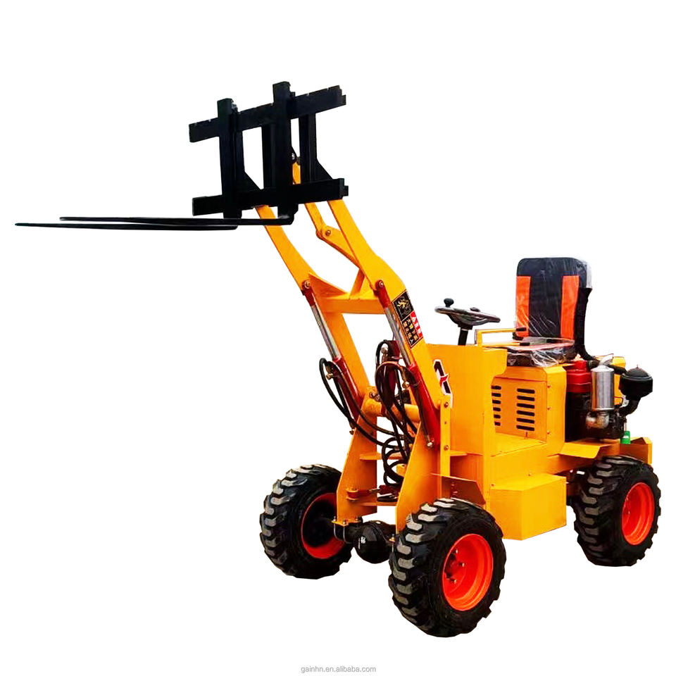 Nouvelle énergie Hightop 500kg pas cher Micro nouvelle pelle Payloader chine Agriculture articulée petite ferme compacte jardin chargeurs frontaux boîte/conteneur en bois