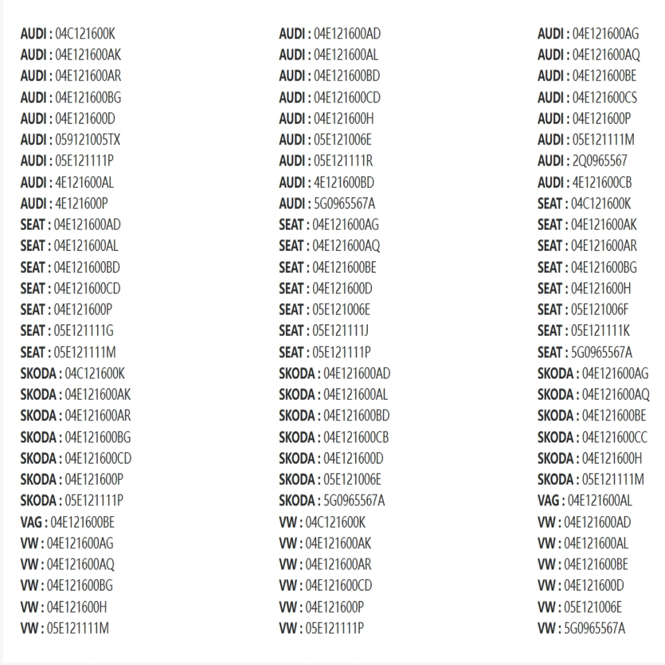 | VW | GOLF VII | 2016.11-2020.08 | 1.6 TDI (85KW,115PS) |