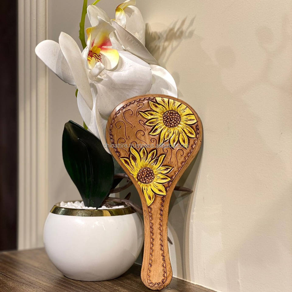 Product name:Western Engraved Tooled Leather Handheld Mirror