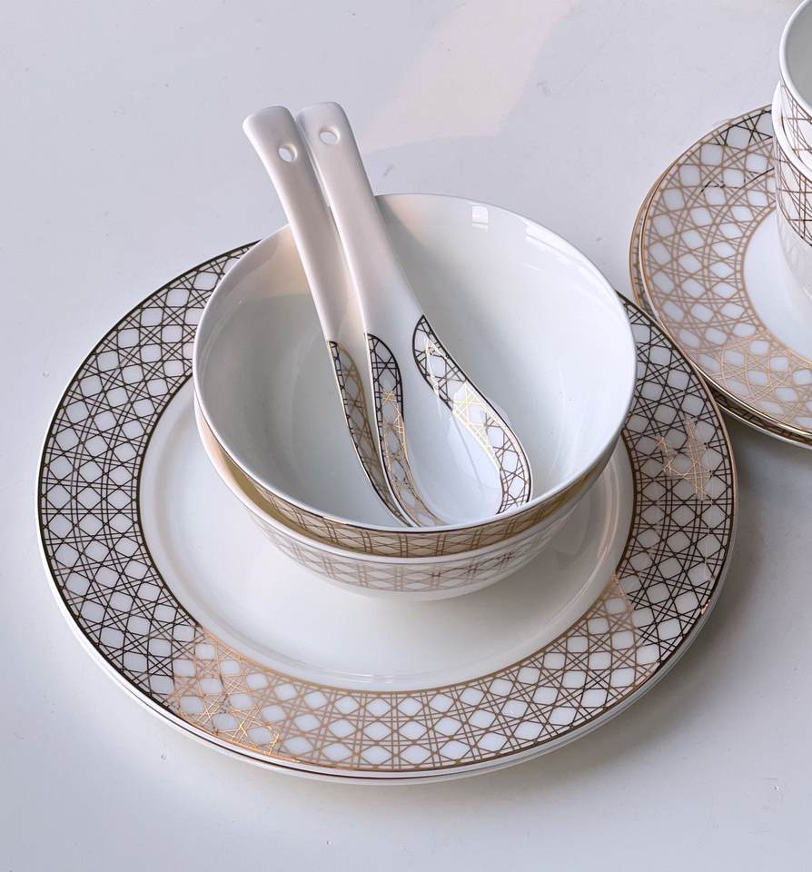 Nouvel ensemble de vaisselle en porcelaine fine à motif quadrillé doré européen, 10 pièces
