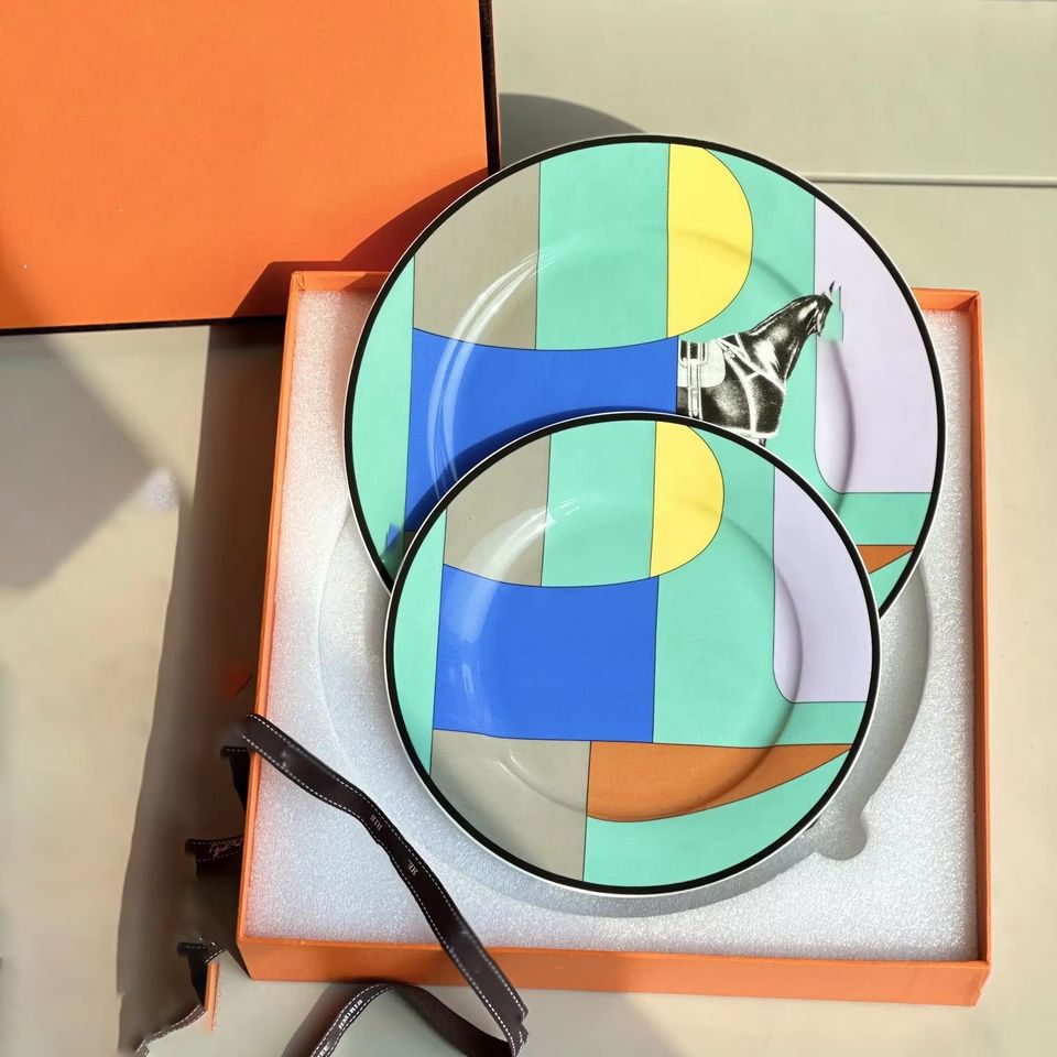 Nouvel ensemble de vaisselle et assiettes en porcelaine de luxe européen à motif équestre