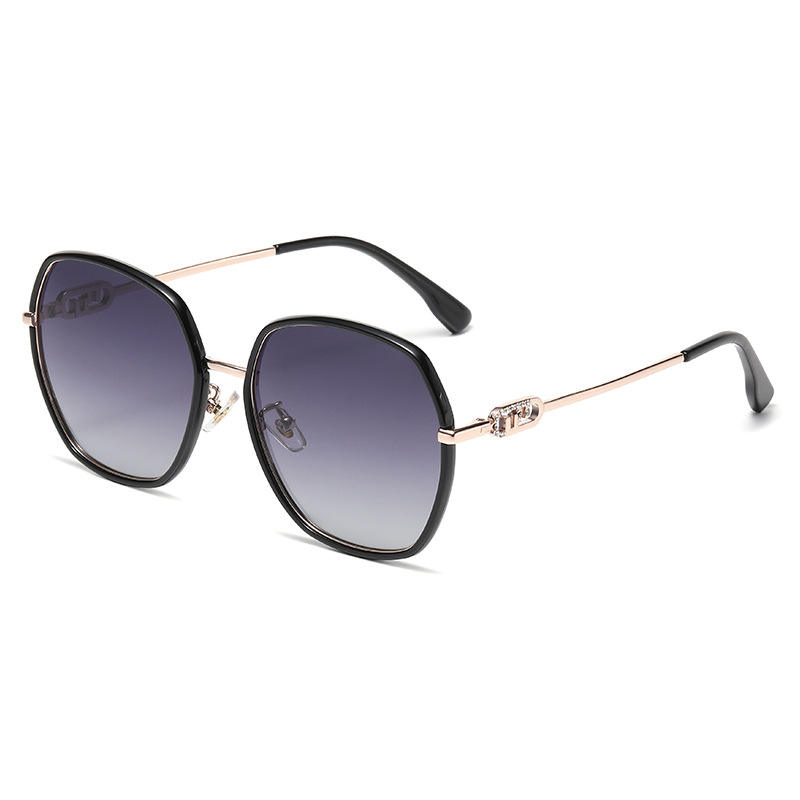 Lunettes de soleil polarisées à monture carrée de style européen pour femmes, Protection UV400, monture en métal TR, lentille TAC noire C1 DL-D6412