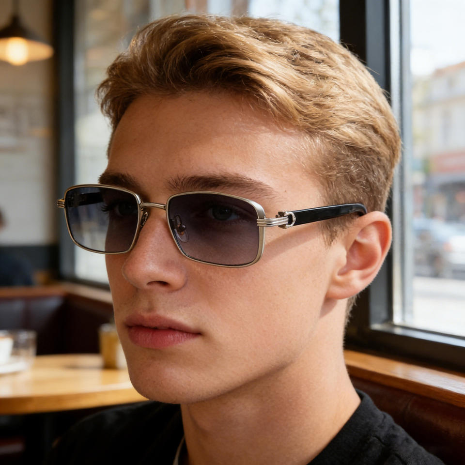 Lunettes de soleil carrées de style européen pour hommes, monture en métal, Protection UV400, pare-soleil de classe 2, couleur noire avec étui, nouvelle collection