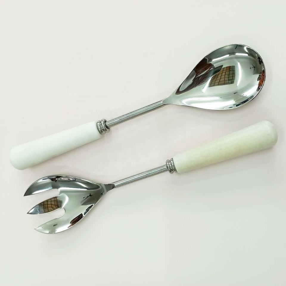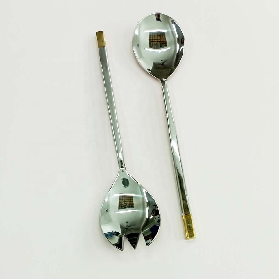 Nouveau serveur de salade poli miroir argenté en métal d'excellente qualité ou cuillères à salade poignée de forme carrée ensemble de serveur de salade de couverts