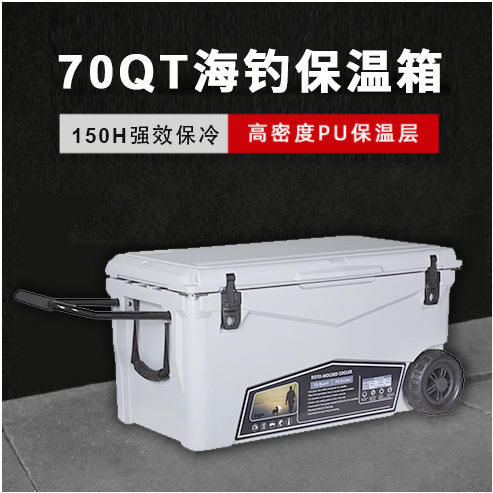 Nouvelle glacière isotherme extra large 87x49x49mm grise à roulettes pour la pêche et les activités de plein air, maintien de la glace jusqu'à 20 jours