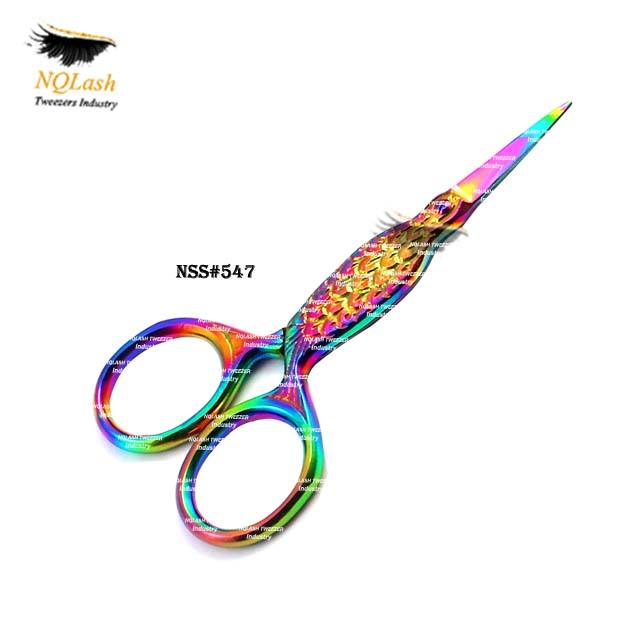 Nouveaux ciseaux à cils couleur arc-en-ciel en acier inoxydable, pointus, beauté personnalisée, Logo, ciseaux à cils, pince à épiler NQLASH
