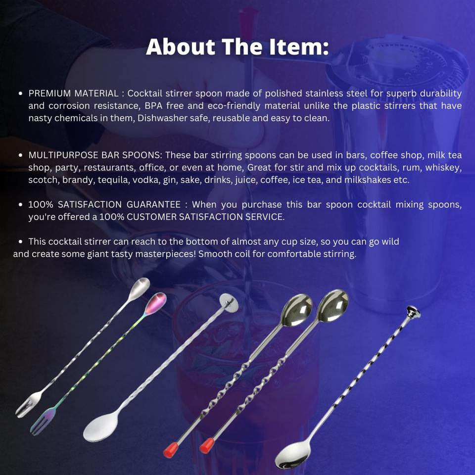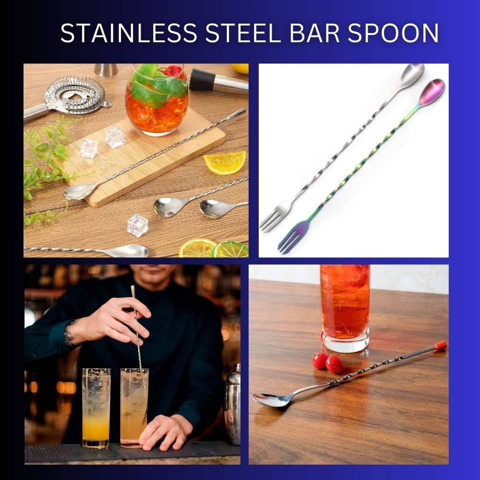 Description:Outils de bar en acier inoxydable de mélange Barware boisson Bar Cocktail cuillère