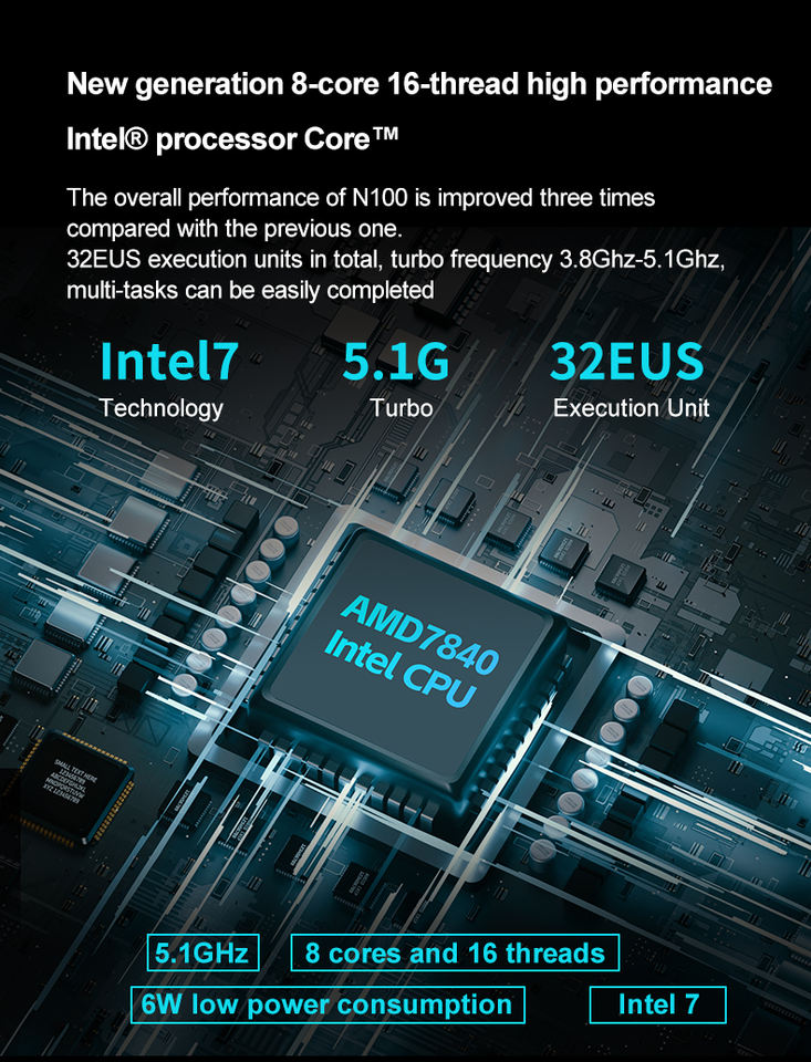 Nouveau mini PC gamer personnalisable en gros pour usine, AMD Ryzen 7 Octa Core 7840HS SSD, usage professionnel, Win 11, DDR5, GDDR5, AMD Radeon RX 680M