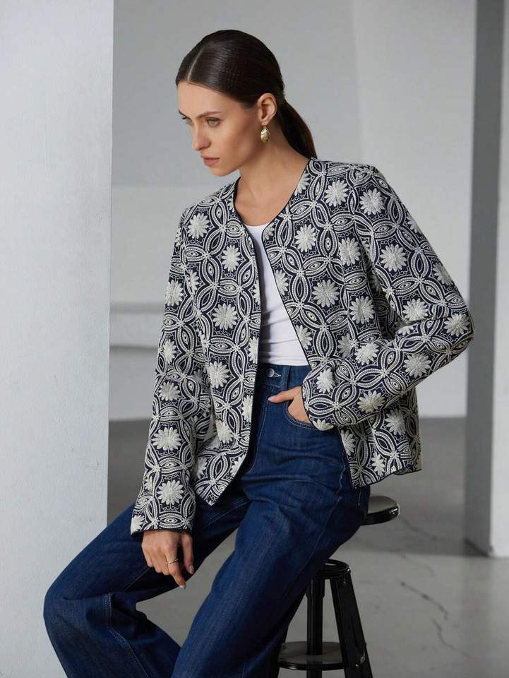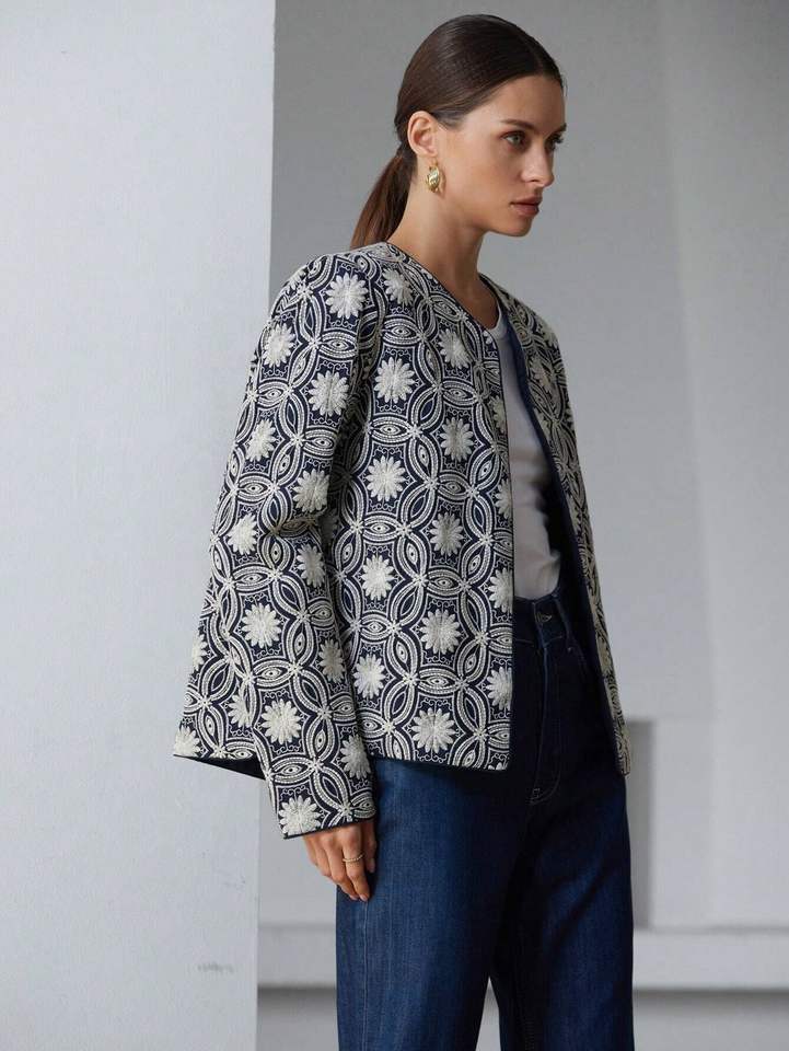 Nouvelle veste matelassée d'hiver pour femmes, sur mesure, fabriquée en usine, 2025, taille XL, toile tissée, broderie, écologique, bohème, florale, 100% coton