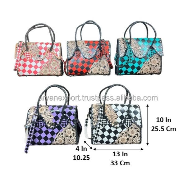 Product Name:Hand-Tooled Checkered Leather Handbag