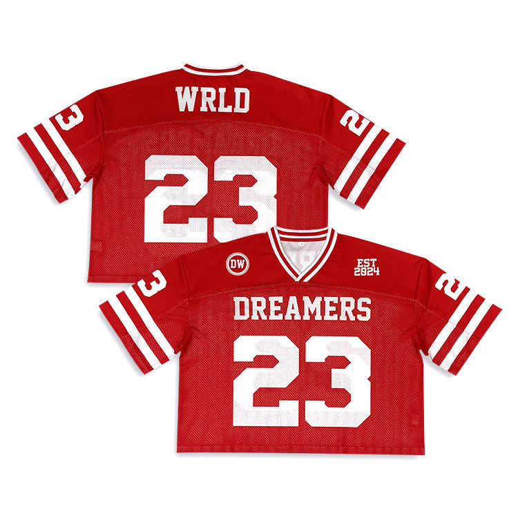 Nouveau maillot de football américain sur mesure fabriqué en usine, en maille, entièrement sublimé, coupe ample, chemise surdimensionnée, maillot court
