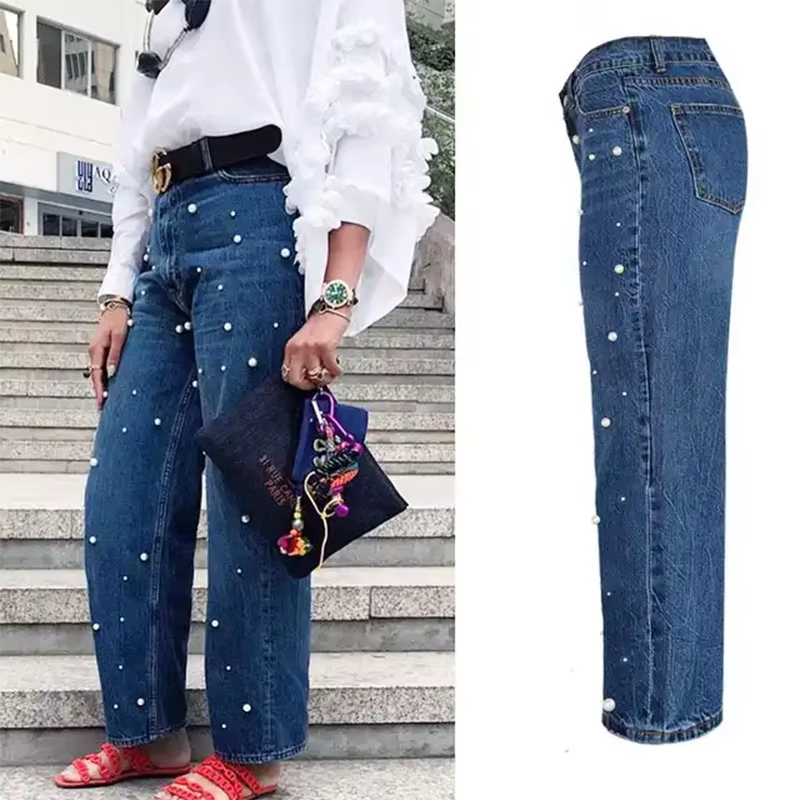 Nouvelle offre d'usine pantalon baggy évasé pour femmes en denim bleu foncé à la mode taille haute personnalisé vente chaude