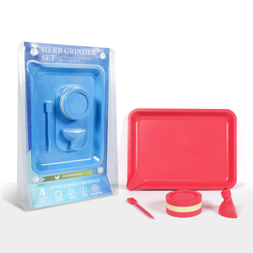 Nouveau prix usine : Ensemble de fumage en plastique biodégradable, comprenant un moulin à herbes, un plateau à rouler avec rouleuse et un moulin à herbes et tabac écologique