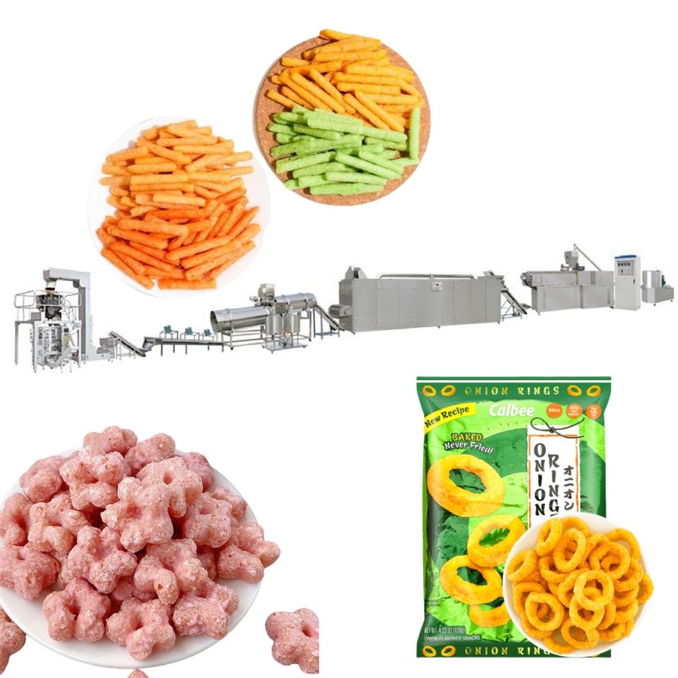 Nouvelle ligne de production de snacks soufflés à l'oignon à double vis extrudeuse, moteur automatique, haute efficacité, acier inoxydable SUS304