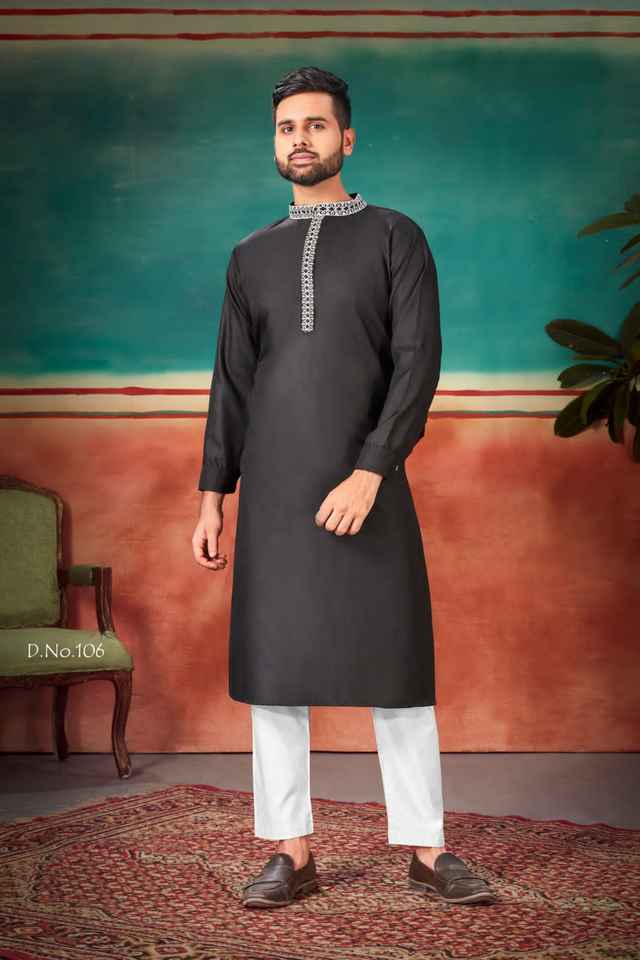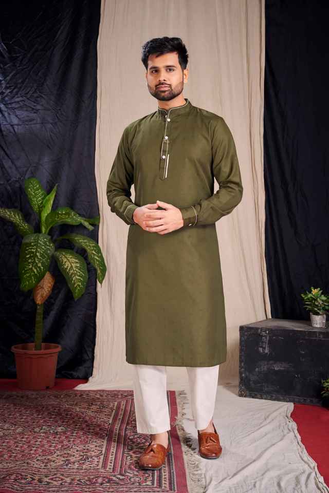 New Fancy Cotton Silk Weaving Stripe and Pocket with Embroidery Stitched Kurt for Men
