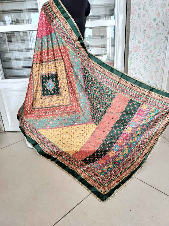 Nouveau Fantaisie À La Main Broderie Miroir Travail Pakistanais Soie Dupattas Bohème Broderie À La Main Coloré Dupattas Pour Les Femmes Vêtements