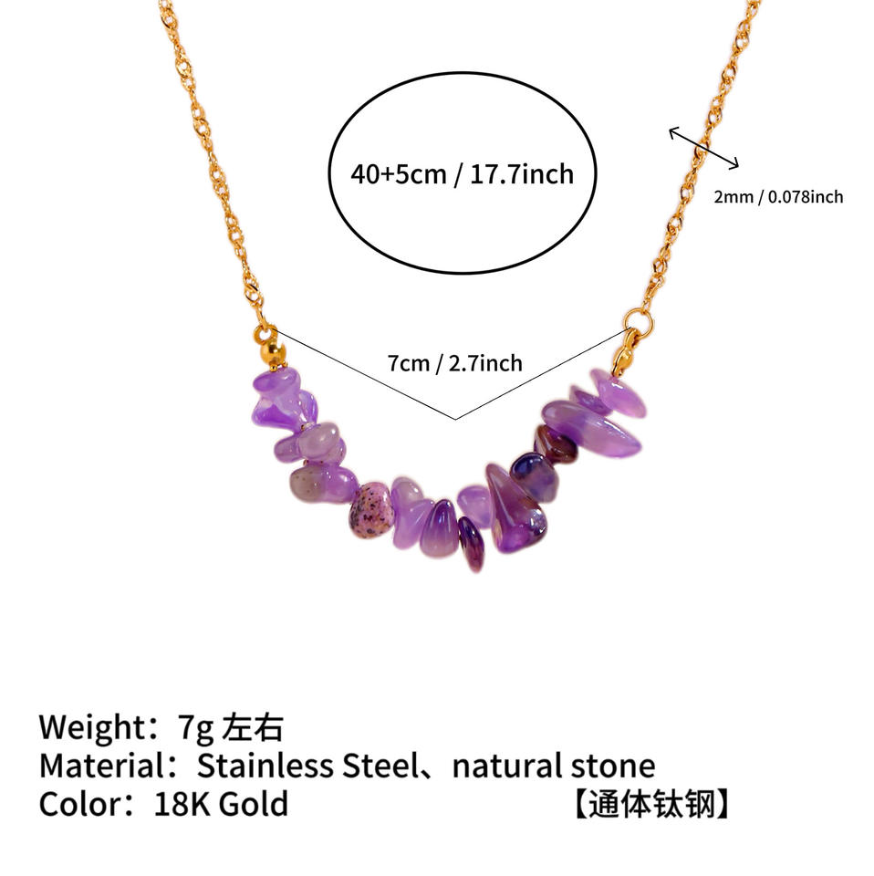 Nouveau collier en acier inoxydable avec perles de pierre naturelle de 12 couleurs, design de pierre irrégulière, chaîne plaquée or pour femmes