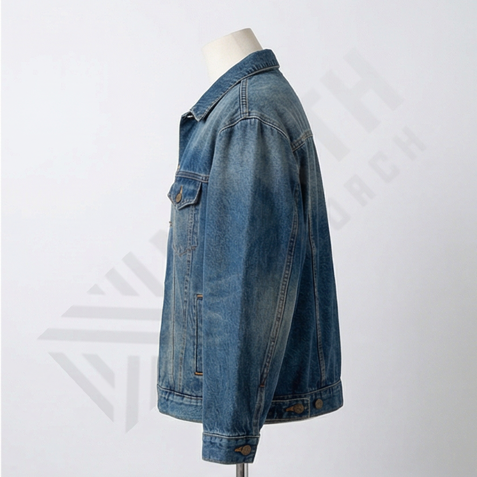 New Fashion Cotton Denim Jacket Men's 2025 Custom Design Solid Blue Color Slim Fit Stand Collar Front Logo Winter Collection