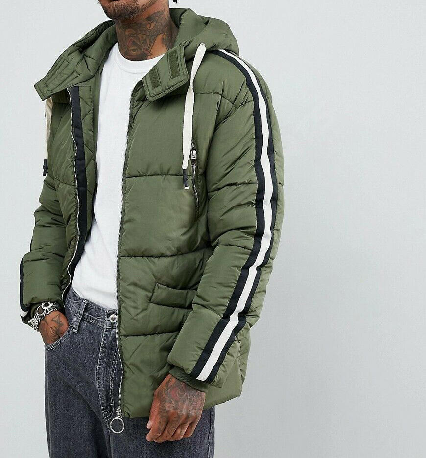 Product name:NEW Style Striped Hooded Puffer Jacket Khaki Size-L winter down jacket