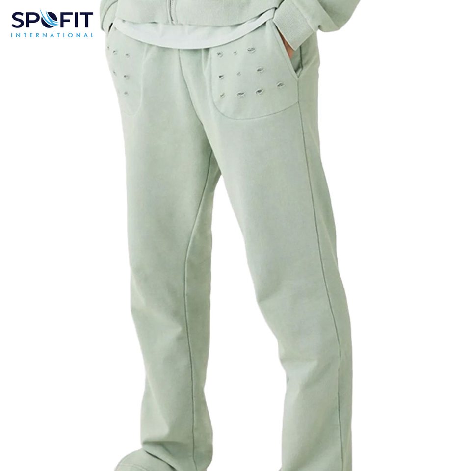 Survêtements 100% coton pour hommes avec logo personnalisé imprimé et déchiré Streetwear avec cordon de serrage surdimensionné