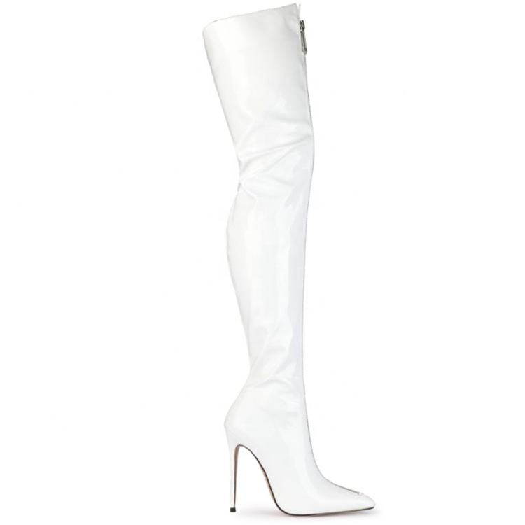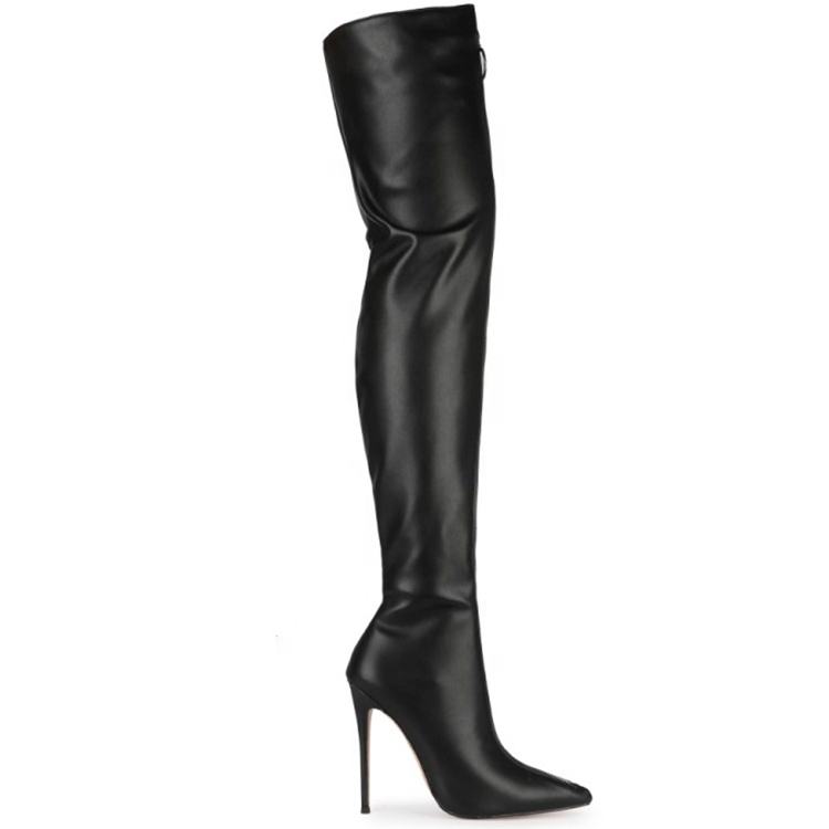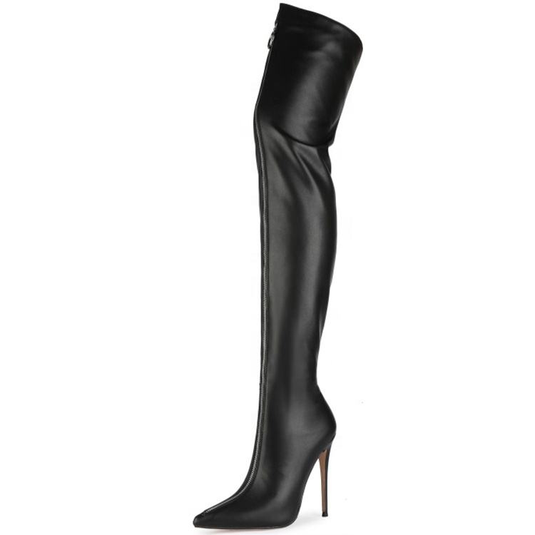 Nouvelles bottes hautes pour femmes, design tendance, fermeture éclair avant, grande taille 45, talons aiguilles, bottes cuissardes pour femmes