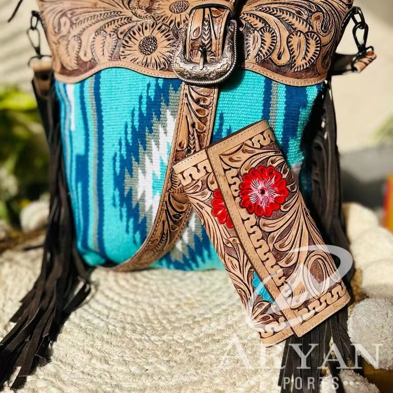 Product Name:Hand Tooled Leather Combo SetBag