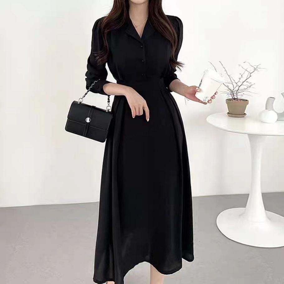 Nouvelle Robe Longue Moulante Écologique Style Coréen pour Femme, Manches Longues, Boutonnage Simple, Automne
