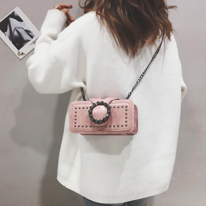 New Fashion Latest Girls Handbags Crossbody Bag Fashion Punk Style Rectangular Shoulder Bags With Metal Chain