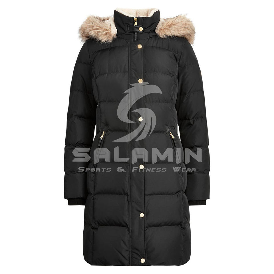 Nouvelle veste matelassée longue tendance pour femmes, durable, sur mesure, de haute qualité, à capuche en fourrure, imperméable et respirante