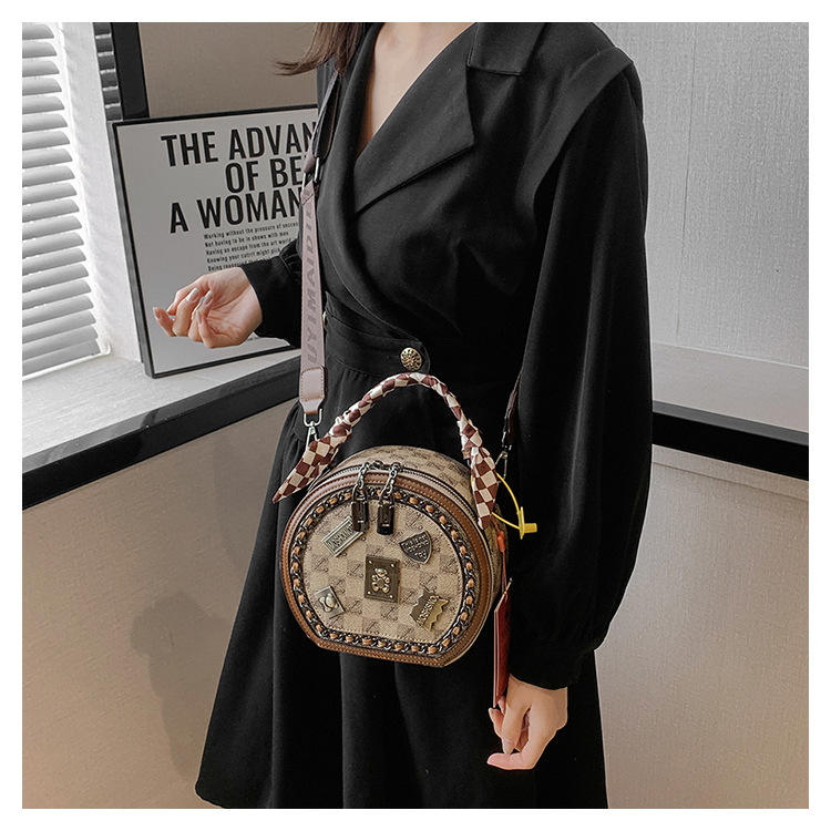 New Fashion Luxury Leather Round Bag Women Shoulder Bag Waterproof Crossbody Purse With Zippered Pockets
