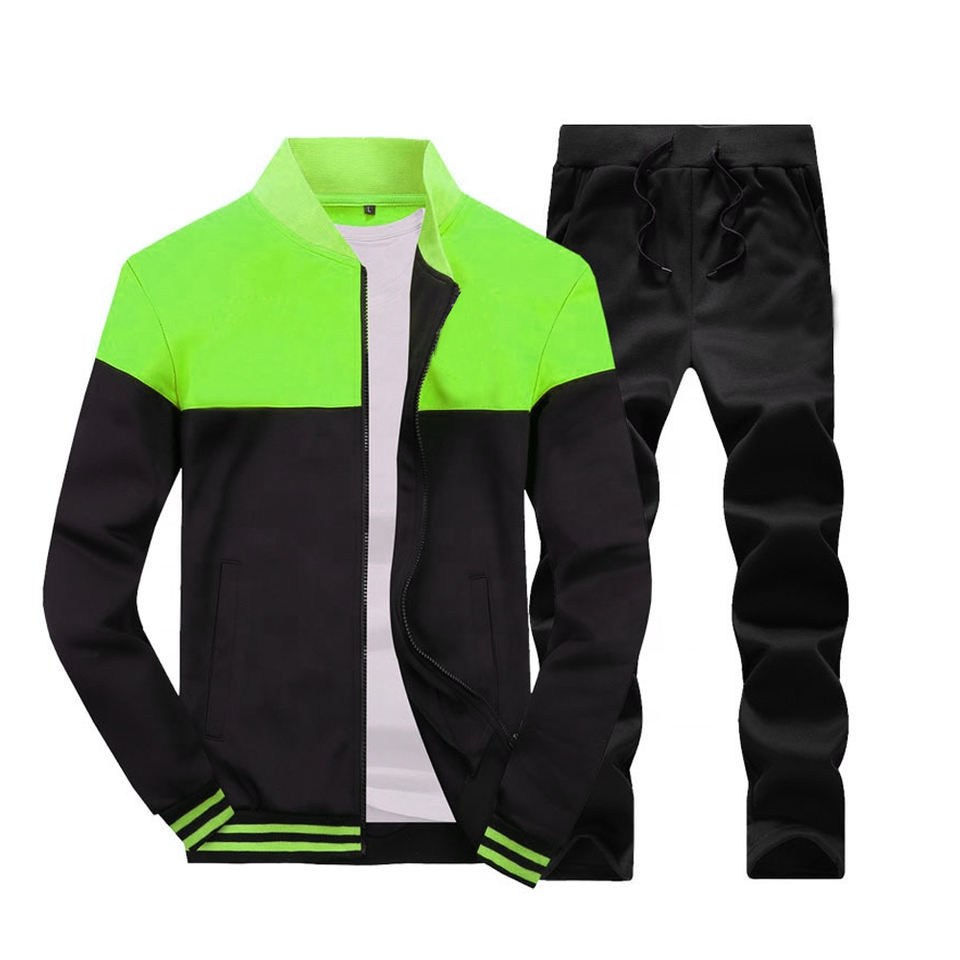 Nouvel ensemble de survêtement tendance pour homme avec fermeture éclair, couleur assortie, veste à manches longues + pantalon, pour sports de plein air, entraînement, école, université