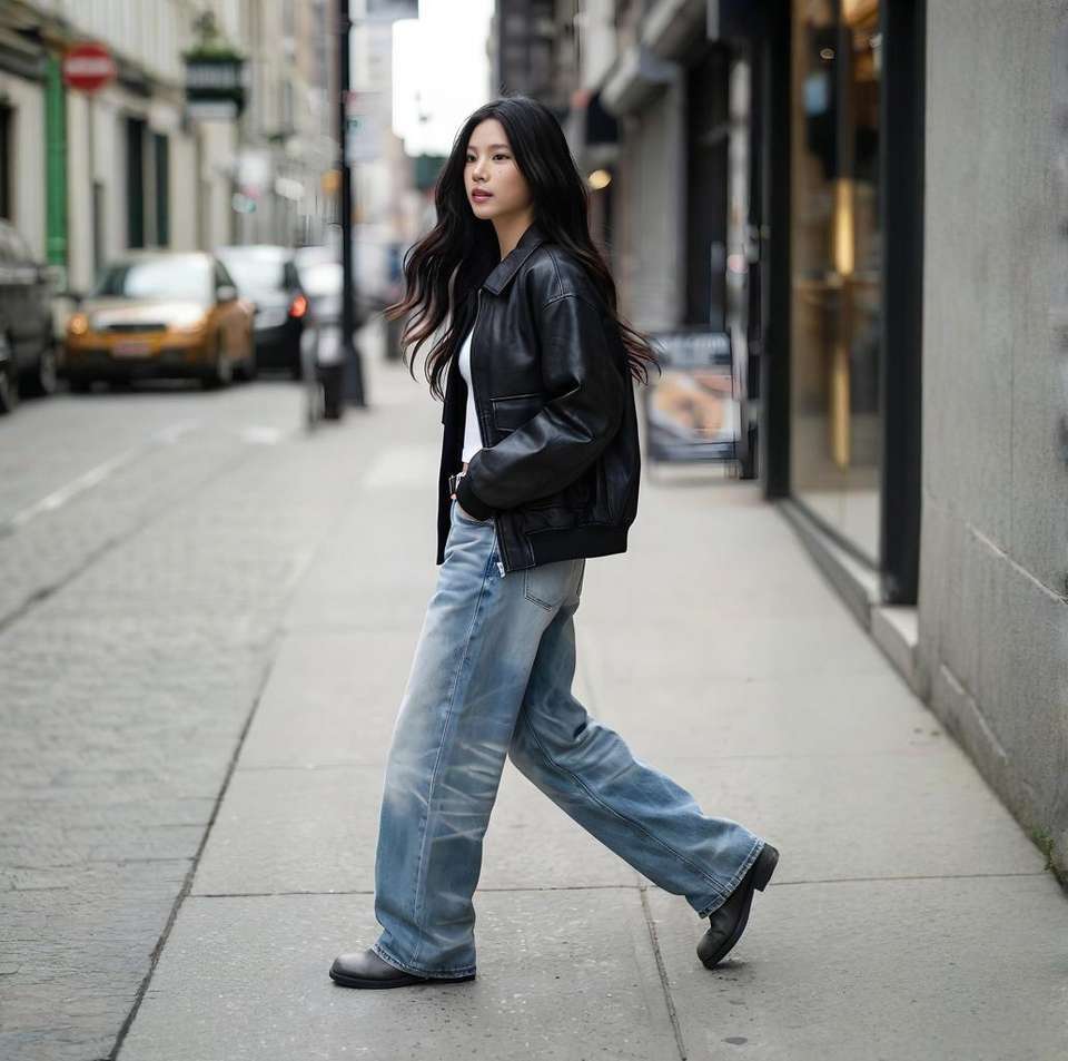 New Fashion Pur Brand High-waisted Wide-leg Blue Vintage Jeans