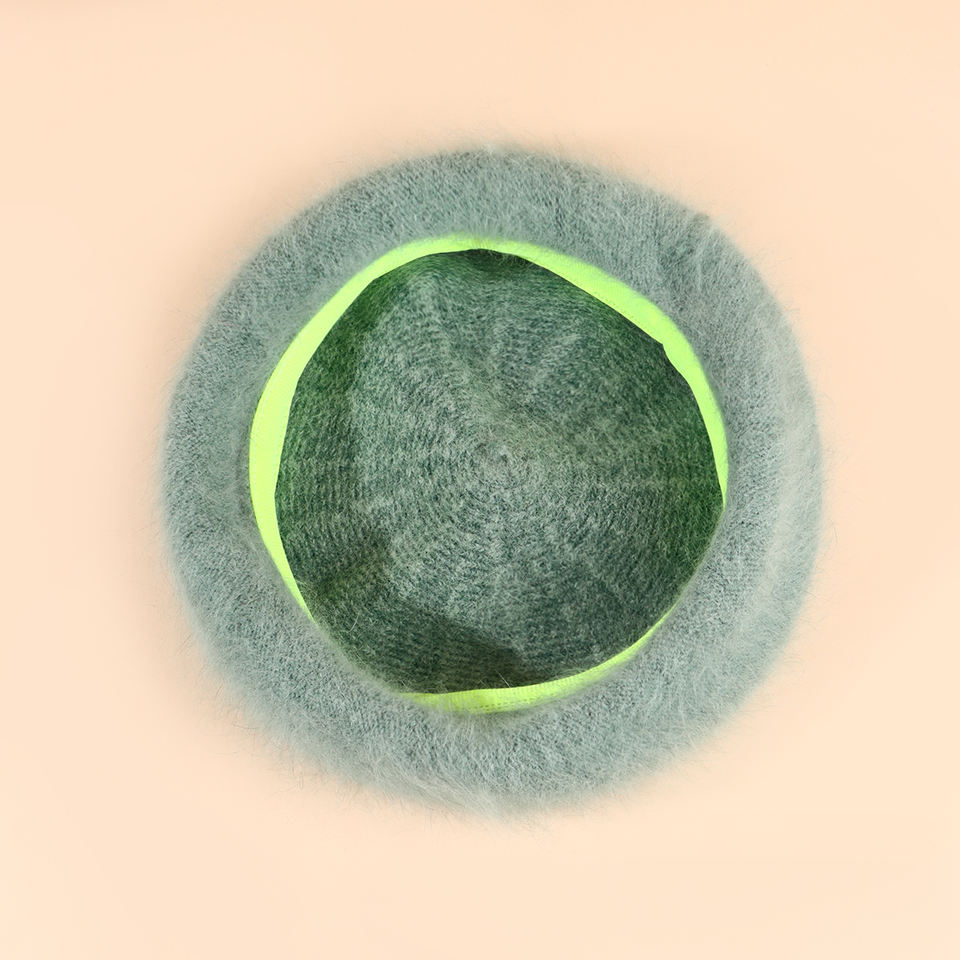 Béret tricoté en fourrure de lapin