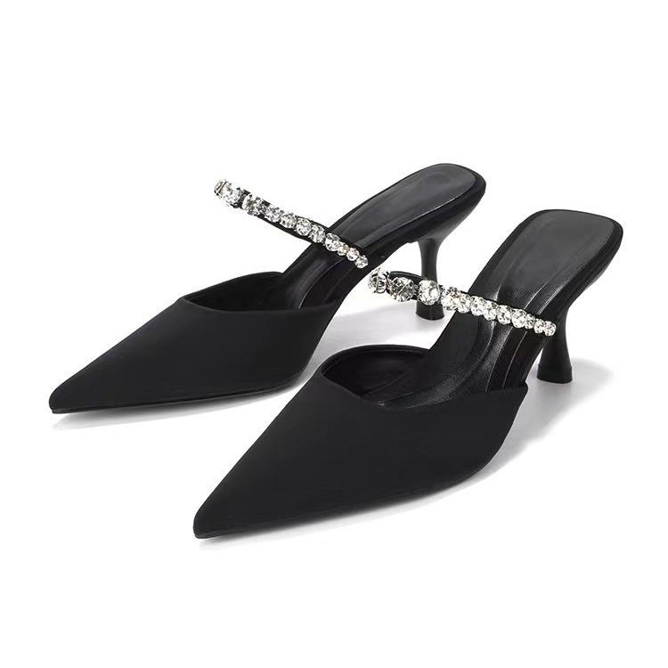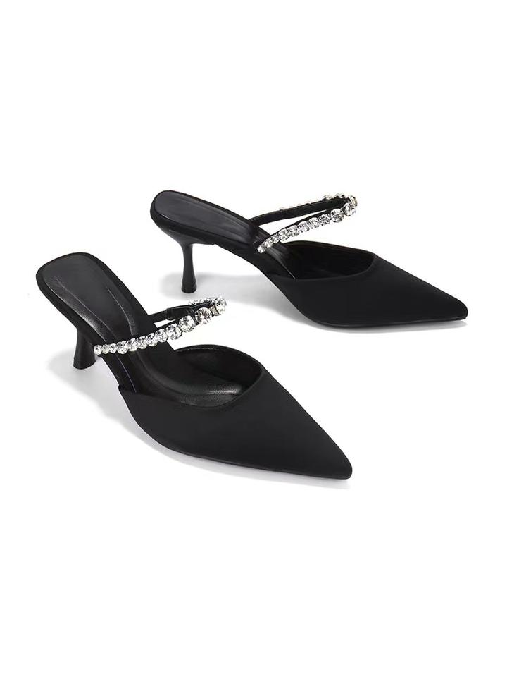 New Fashion Sexy Solid Color Rhinestone Pointed Stiletto High Heels Outdoor Temperament Plus Size Slippers Party Women Pumps