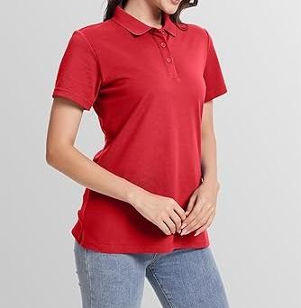 Nouveau T-shirt Polo Uni Rouge à Manches Courtes pour Femme – Style Décontracté, Respirant, Idéal pour l'Été et le Golf