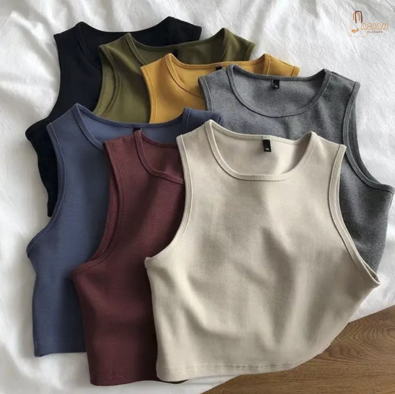 Nouvelle mode été couleur unie col rond T-shirt élastique sans manches femmes gilet