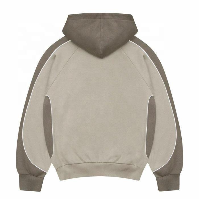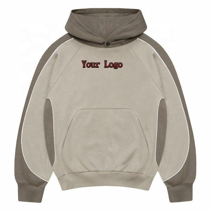 Nouveau sweat-shirt à capuche en coton épais bicolore patchwork 500 GSM pour homme, broderie sur les bords, sweat-shirt ample