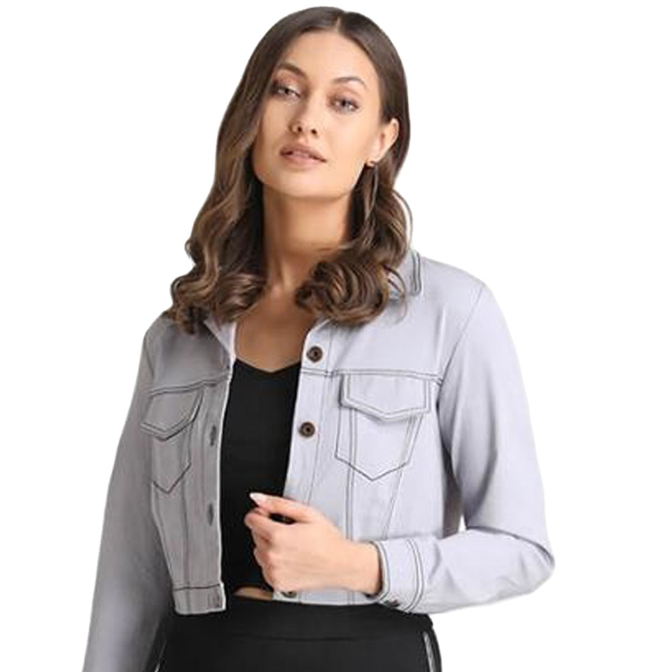 Nouvelle veste en jean pour femmes grande taille en denim uni d'hiver avec rivets et rembourrage en coton