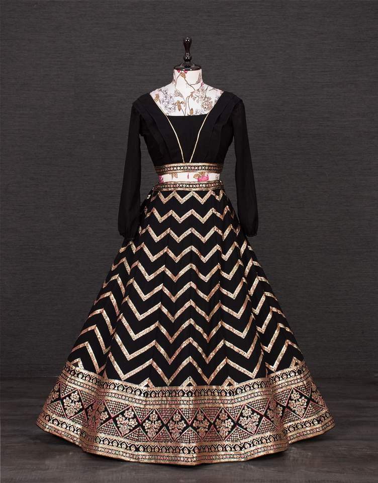 Type de produit:Belle couleur noire à la mode Lehenga Choli