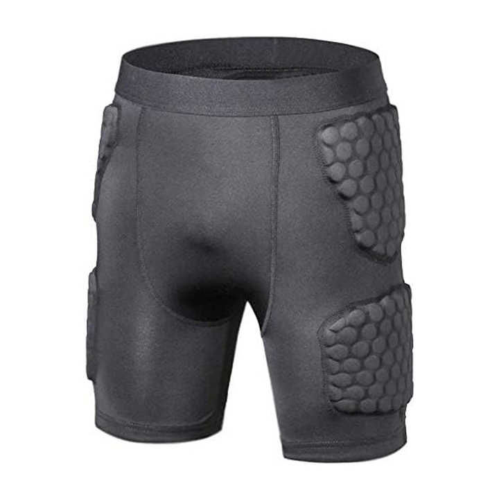 Shorts de compression rembourrés de couleur unie au design tendance, fabriqués avec un tissu de marque de haute qualité, pour le football.