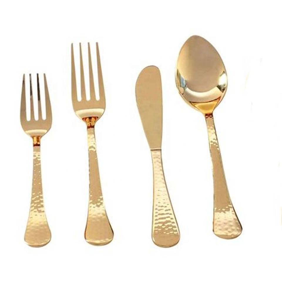 Nouvelle fourchette en acier inoxydable à salade de fruits à long manche plat en or à la mode avec fourchette en acier inoxydable cuillère ensemble de couverts en or