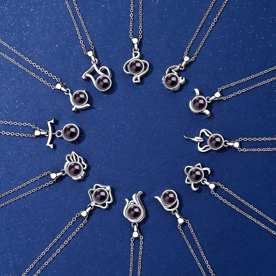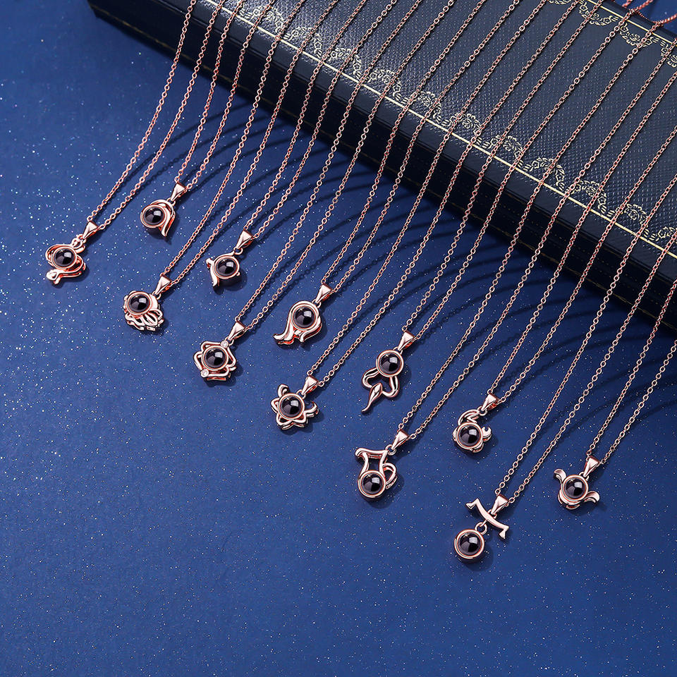 Chaînes en alliage de cuivre à projection haute définition, tendance, 12 signes du zodiaque, photos couleur en 100 langues, micro-gravure de texte