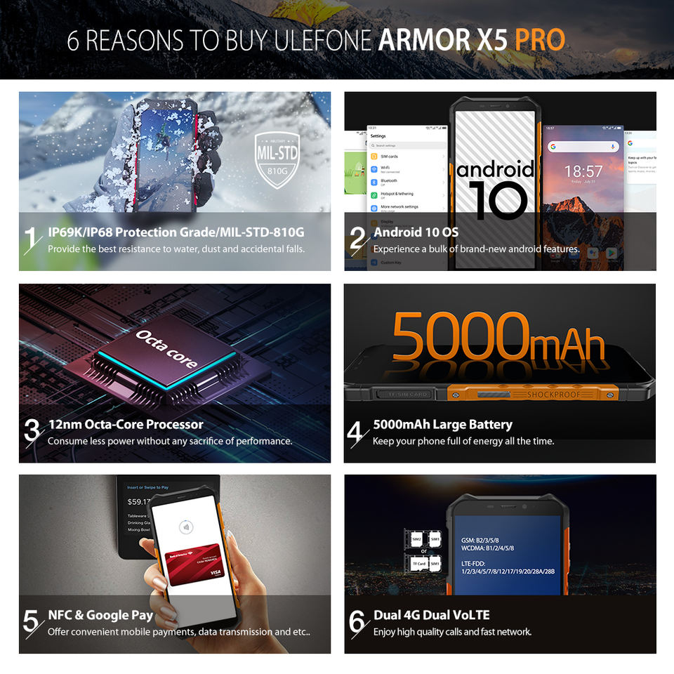 Nom du produit:Ulefone Armor X5 Pro Téléphone intelligent