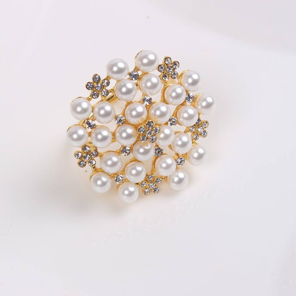 Nouveaux accessoires de table de fête mariage faits saillants perle or serviette boucle serviette anneau papier serviette anneau