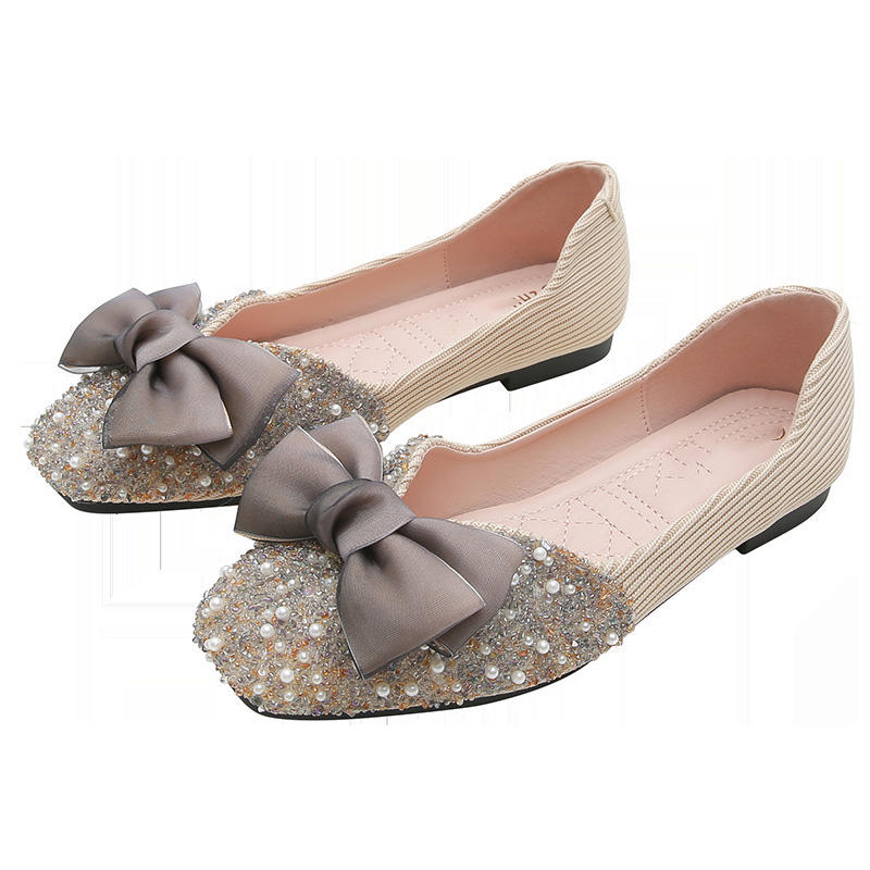 Nouvelles chaussures bateau plates à perles et strass, mini-boussole, bout fermé, à enfiler, légères, respirantes, en PU, pour l'été, le printemps et l'automne