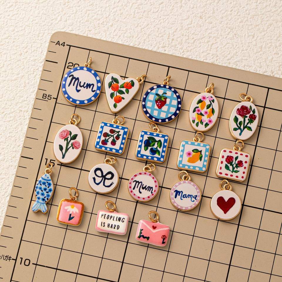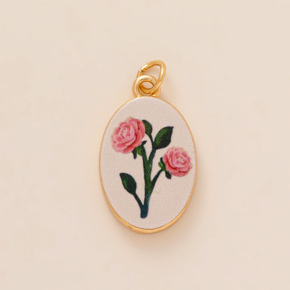 Nouvelles bottes florales avec pendentif en forme de cœur imprimé par transfert thermique, accessoires de bricolage plaqués or, couleur inaltérable